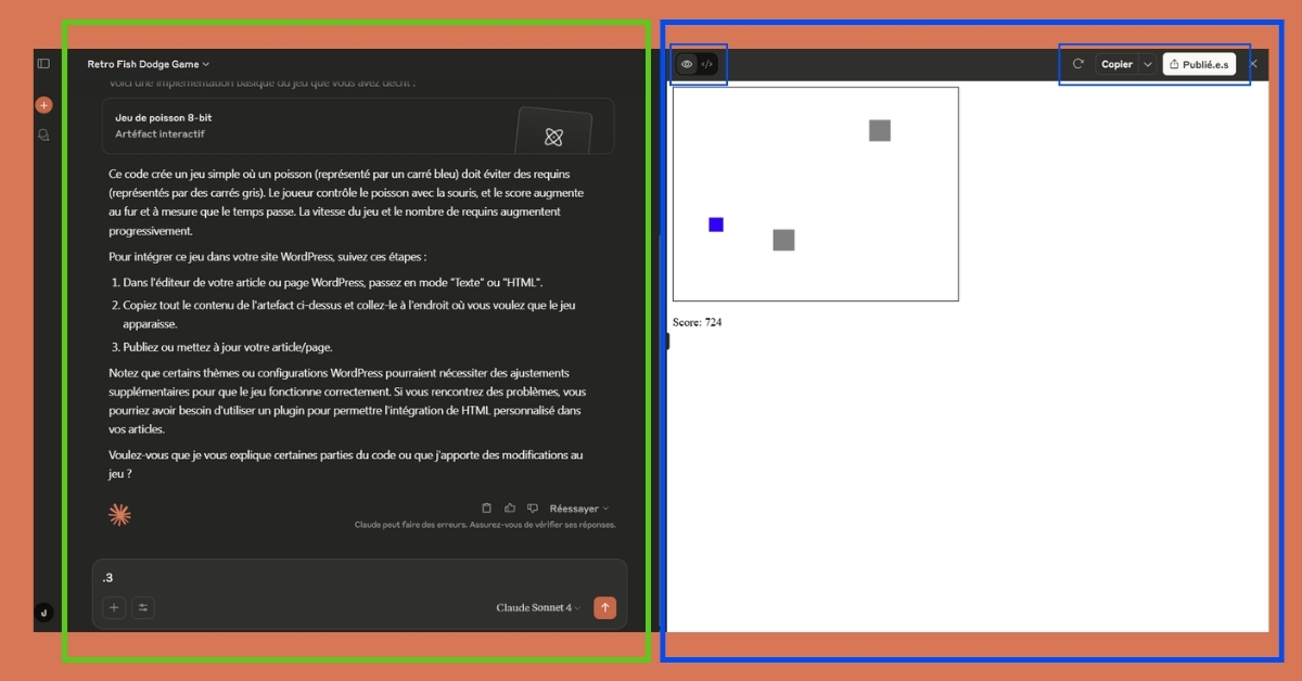Les Artefacts de Claude peuvent se révéler utiles pour une multitude de tâches : rédaction de documents complexes, génération de tableaux de données, élaboration de plans ou de diagrammes interactifs. Ci-dessous, nous vous proposons une démonstration de l’outil sur des tâches de codage, l’une des plus adaptées à l’utilisation de cette fonctionnalité.
