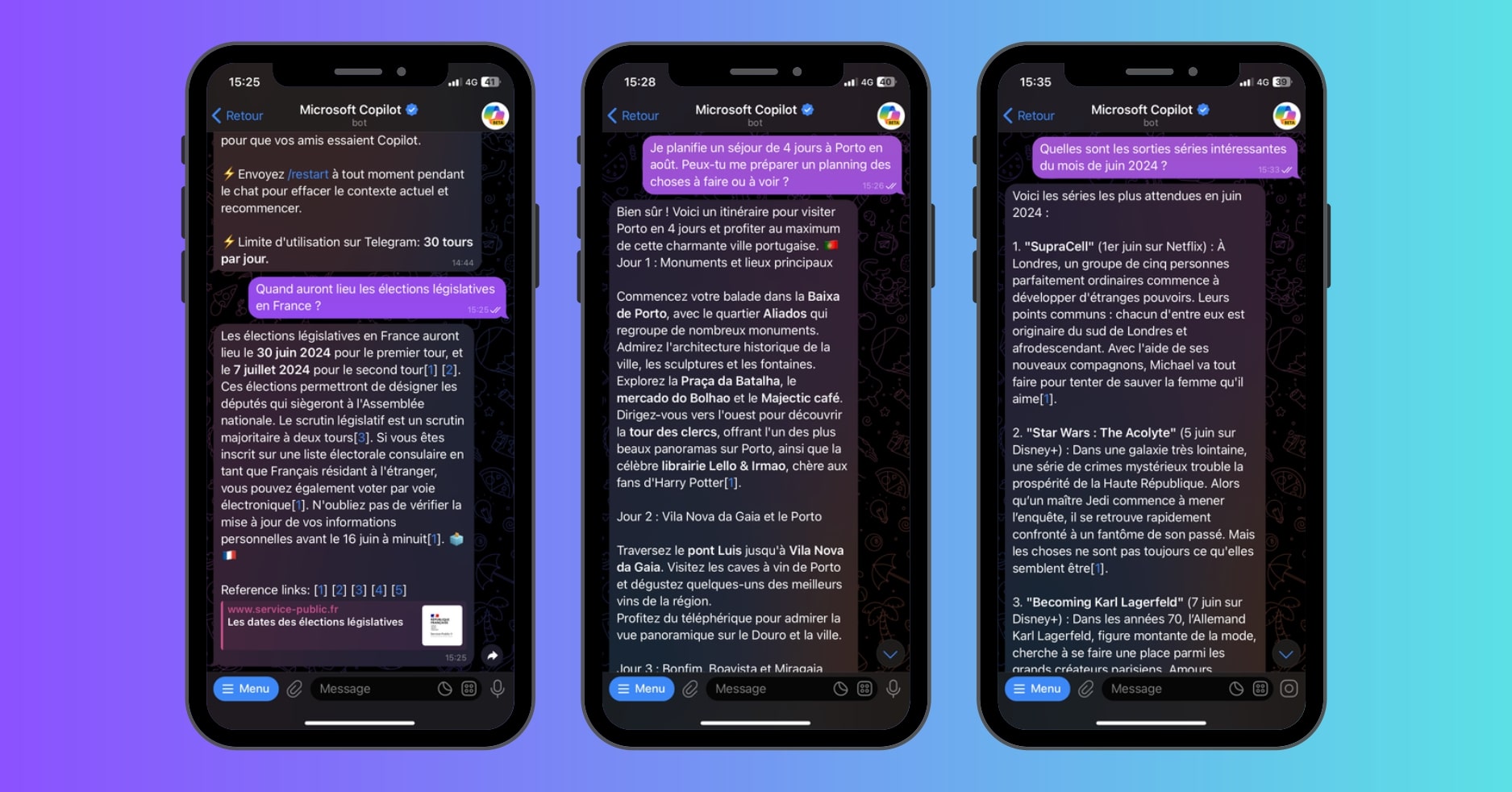 - Vous pouvez désormais discuter avec Copilot, directement via Telegram.