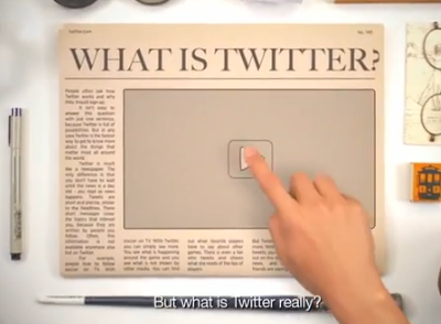 Pour les nombreuses personnes qui ne comprennent pas encore ce qu’est Twitter, le réseau social a publié il y a quelques mois une vidéo explicative qui vient tout juste de refaire surface. Elle présente de manière pédagogique l’intérêt de Twitter, la notion de temps réel, le fait de s’abonner à des comptes, des utilisations possibles… Le tout en anglais (sous-titré) et en un peu plus d’une minute. A faire voir à vos contacts qui n’ont toujours pas compris son principe !