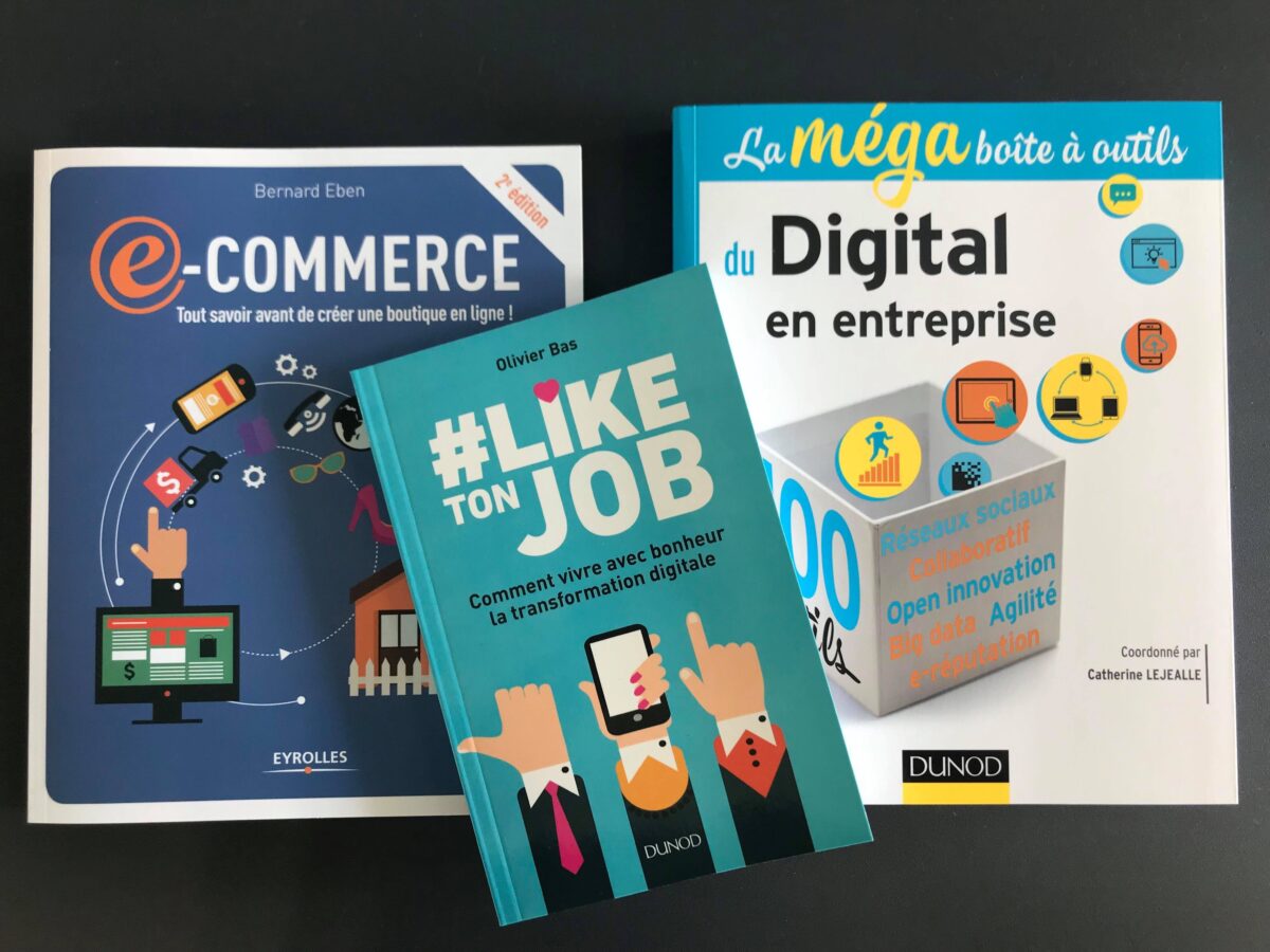 Nouveau jeu-concours avec cette fois-ci 3 livres à découvrir et à gagner sur le e-commerce, le digital en entreprise et la transformation digitale. Dans « e-commerce », Bernard Eben vous donne toutes les clés pour mener à bien votre projet de boutique en ligne. Avec « La méga boîte à outils du digital en entreprise », Catherine Lejealle met à disposition 100 outils indispensables pour maîtriser le digital quand on est en poste, et ce quel que soit le métier ou la structure. Enfin dans « #LikeTonJob », Olivier Bas retrace l’origine de la transformation digitale et donne des conseils pour rendre son travail plus épanouissant.