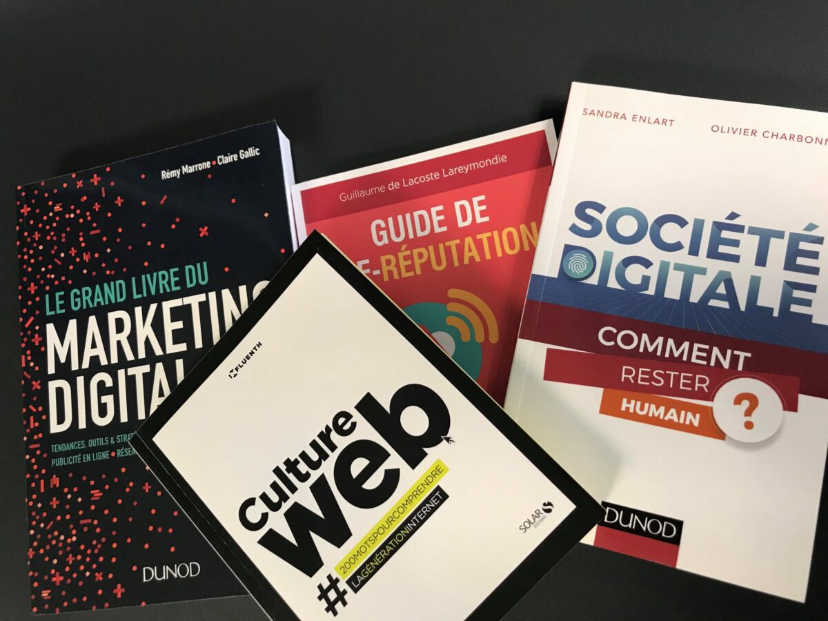 Nouveau jeu-concours, avec cette fois-ci une sélection de 4 œuvres à découvrir et à gagner ! Dans « Le grand livre du marketing digital », Rémy Marrone et Claire Gallic décryptent le secteur et donnent les meilleurs conseils pour se lancer dans les meilleures conditions. Soraya Khireddine fournit un beau lexique de 200 mots pour comprendre la génération Internet dans « Culture Web ». « Le guide de l’e-réputation » de Guillaume de Lacoste Lareymondie vous apprendra quant à lui à soigner votre réputation et développer votre visibilité, en vous donnant les clés pour gérer votre image publique via les réseaux sociaux. Enfin, avec « Société digitale, comment rester humain ? » Sandra Enlart et Olivier Charbonnier posent des problématiques et proposent une approche novatrice, pour tirer le meilleur de la société digitale actuelle.