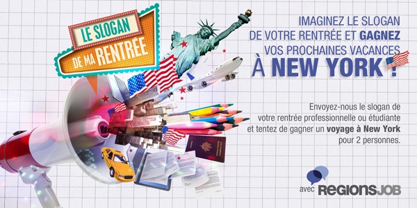 Il y a quelques semaines, nous vous proposions la première étape d’un concours créatif en vous demandant d’imaginer le slogan de votre rentrée. Cela vous a inspiré, puisque vous avez été près de 5 000 à participer ! Les slogans ont été nombreux et inventifs, cela a été dur de choisir… Mais nos 5 membres du jury ont tranché et ont sélectionné chacun deux propositions, qu’ils défendent pour cette deuxième partie du concours. Un voyage à New York est en jeu pour celui qui recevra le plus de votes. Et les votants ne sont pas oubliés, puisqu’un iPad mini sera offert à un des participants désigné par un tirage au sort.