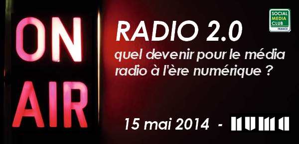 Le Social Media Club, cercle de réflexion et de rencontres autour des nouveaux médias, organise régulièrement des conférences. Nous avions ainsi récemment présenté un événement sur l’engagement numérique autour des élections municipales. La prochaine session, dont nous sommes partenaires, aura lieu le 15 mai prochain au NUMA à Paris et aura pour thème l’avenir de la radio à l’ère numérique : « Radio 2.0 : quel devenir pour le média radio à l’ère numérique ?« .