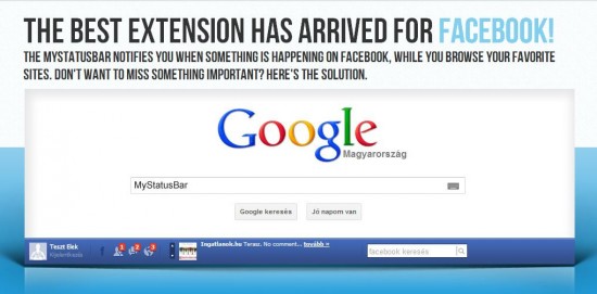Si vous ne voulez rien rater de la moindre activité de votre compte Facebook, cette extension est faite pour vous ! Disponible pour les navigateurs Chrome et Firefox, My Status Bar est une petite barre de notifications qui permet d’avoir en permanence sous les yeux les éléments importants de son compte Facebook. Il est ainsi possible de continuer ses activités sur Internet tout en étant prévenu dès qu’un ami poste une photo de vous, commente vos publications, vous envoie un message… Une extension à réserver aux addicts du réseau social ! Ou à tous ceux qui souhaitent être notifiés immédiatement des activités de leur compte sans pour autant se rendre sur Facebook en permanence.