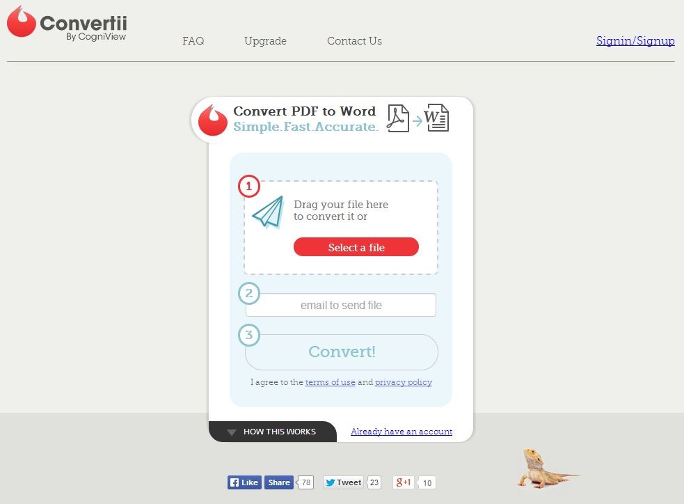 Convertii est un outil qui va vite devenir indispensable aux professionnels et aux étudiants. Il est très simple à prendre en main. Il suffit de se rendre sur le site Convertii, sélectionner un document PDF sur son ordinateur (ou utiliser le drag & drop), inscrire son email et cliquer sur convertir. Quelques secondes plus tard, on reçoit un email avec un lien, permettant de télécharger le fichier Word converti par Convertii. Et c’est tout ! Vous êtes simplement limité à 3 documents et 2Mb par fichier sans inscription. Si vous souhaitez convertir plus de documents PDF, vous devrez vous enregistrer, vider vos cookies ou passer en navigation privée. Des plans payants existent pour convertir jusqu’à 30 documents et 10Mb par fichier ($4/mois) ou convertir tous les documents PDF de votre choix jusqu’à 30Mb par fichier ($8/mois). Dans tous les cas, les fichiers sont convertis en .DOCX.