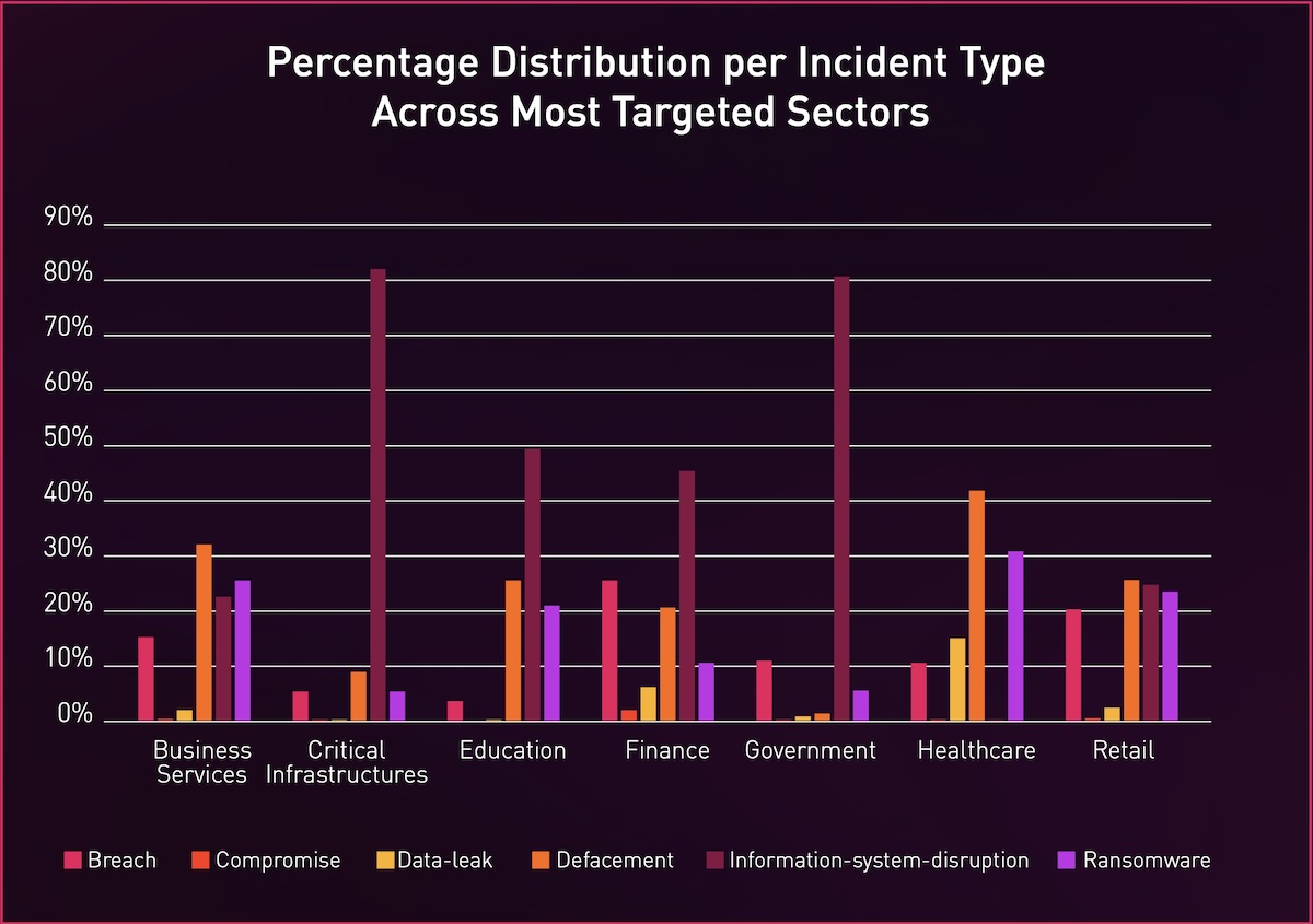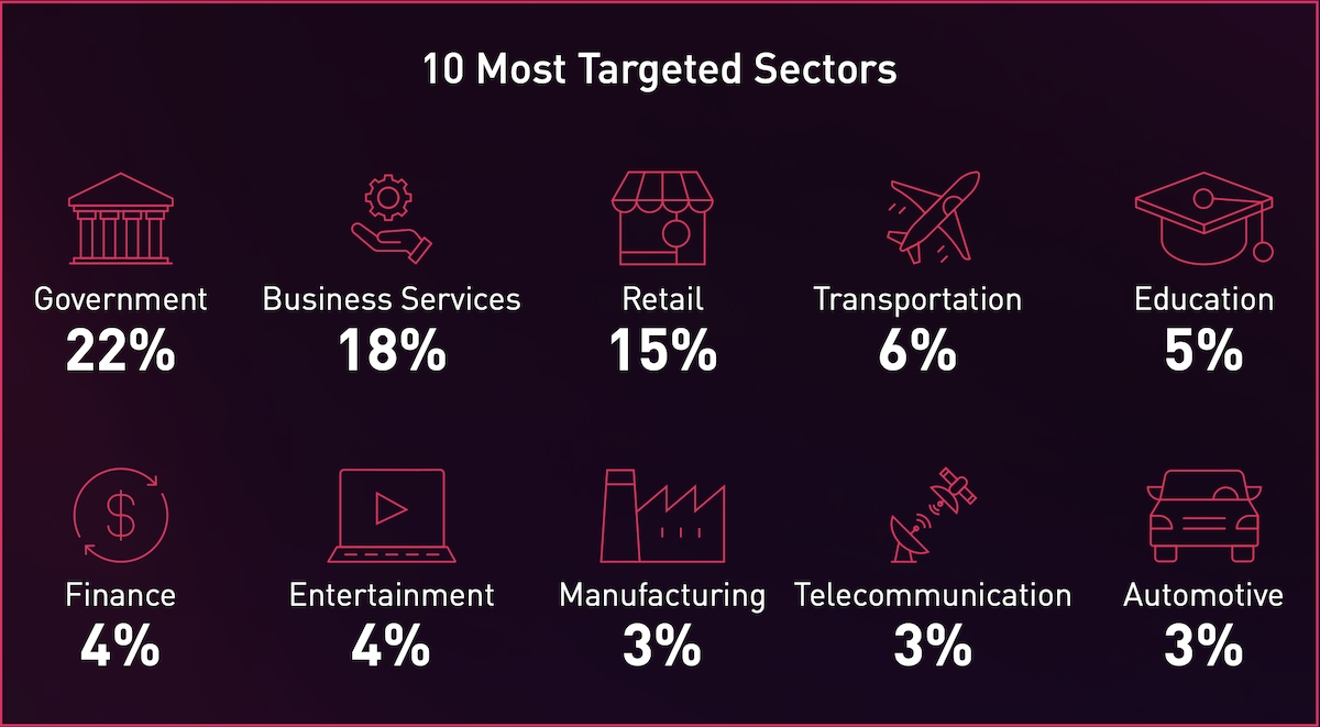 Les secteurs les plus visés en France reflètent une logique d’impact maximal (voir image de une). Le secteur gouvernemental arrive en tête avec 22 % des attaques, ciblé pour son importance stratégique, sa vulnérabilité aux opérations à motivation politique… et celle de ses systèmes ? Parmi les incidents notables, le rapport mentionne des attaques attribuées au GRU russe en avril et une intrusion au ministère de l’Intérieur en décembre par… un jeune hackeur de 22 ans.