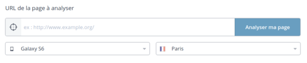 Pour vos analyses, vous pouvez ainsi choisir le type de device (Nexus, Galaxy S6 ou Tab, iPhone…), le lieu de connexion, le type de connexion (3G, 4G, ADSL, etc.). Pour les analyses mobiles, il est par exemple important de tester la performance de son site avec une connexion 3G pour vérifier que vos pages se chargent suffisamment vite dans ces conditions pas forcément idéales, mais encore courantes pour de nombreux utilisateurs.