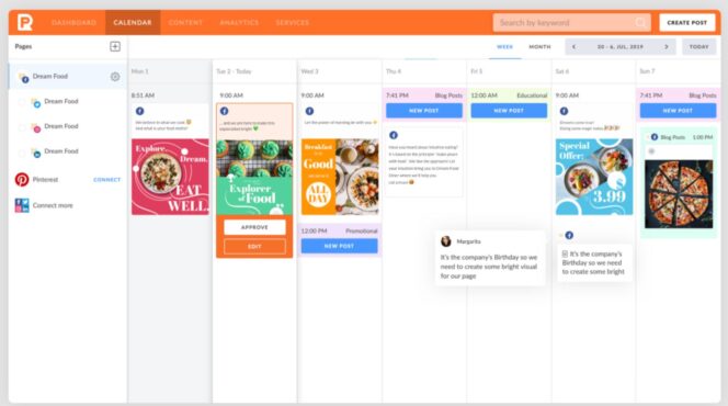 PromoRepublic permet de planifier les publications des réseaux sociaux suivants : Facebook, Instagram, Twitter, LinkedIn, Pinterest et Google My Business. Vous retrouvez les services suivants : un calendrier social media, un emplacement pour gérer son contenu et ses idées, des espaces de travail, un Ads Manager et une section statistiques. C’est une belle alternative à Hootsuite ou Buffer.