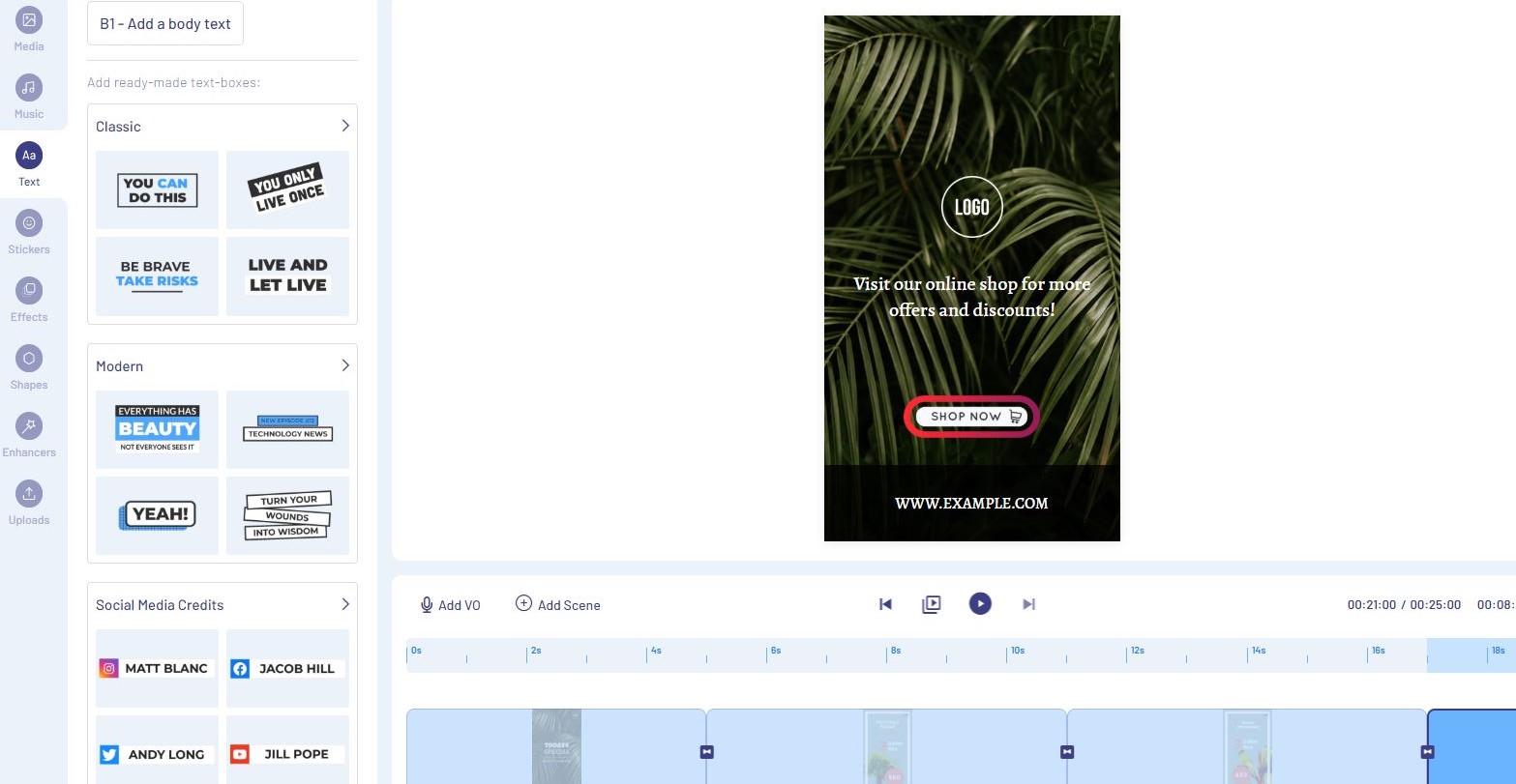 Avec InVideo, vous pouvez créer des montages vidéo, sans avoir de compétences techniques. Des centaines de templates vidéo sont à disposition : promotion d’une marque, présentation d’un produit ou d’un service, promotion d’un événement, témoignages clients, etc. Pour vous aider, les modèles sont proposés dans les tailles standards requises sur les réseaux sociaux. InVideo est un outil idéal pour ceux qui souhaitent réaliser des vidéos marketing, de façon rapide.