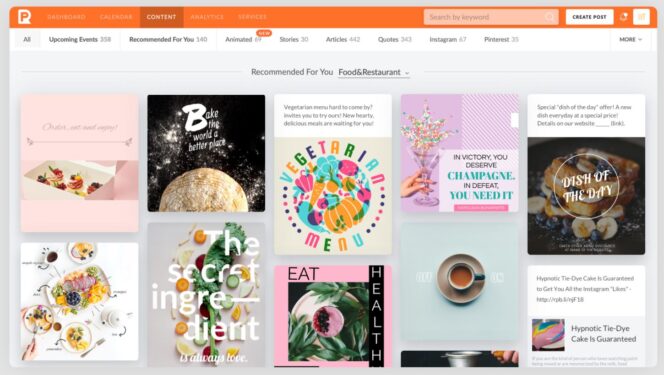 L’outil permet de programmer des posts pour Facebook, Instagram, Twitter, LinkedIn, Pinterest et Google My Business. Vous avez à disposition un calendrier social media intuitif, une section dédiée pour gérer et centraliser vos contenus et vos idées, des espaces de travail pour faciliter la collaboration, un Ads Manager pour gérer les publicités et une section statistiques. Une alternative intéressante à Hootsuite ou Buffer.
