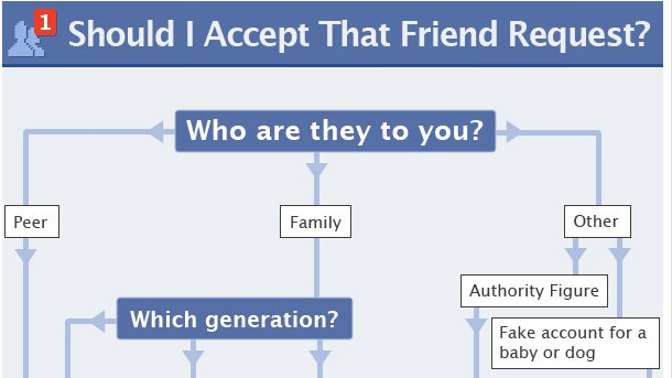 Ce diagramme couvre pas mal de situations possibles… Mais plus sérieusement, n’oubliez pas que donner l’accès à votre profil Facebook peut délivrer énormément d’informations. Choisissez bien les personnes incluses dans votre liste d’amis, et n’hésitez pas à utiliser le système de listes pour affiner le degré de visibilité de vos publications.