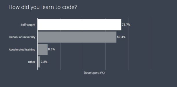 Au niveau de l’apprentissage, les autodidactes sont encore très nombreux : 73,7%. 69,4% ont appris via une école ou une université.