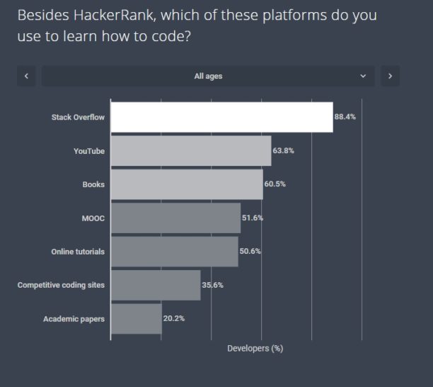 Au niveau des plateformes préférées pour apprendre à coder ou se perfectionner, les résultats désignent très largement Stack Overflow.