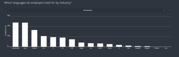 Les langages les plus demandés par les entreprises sont : JavaScript, Java, Python, C++, C, C#, PHP, Ruby, Go, Swift.