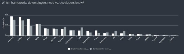 Il n’y a pas de différences entre les langages maîtrisés par les développeurs, et les langages recherchés par les entreprises. En revanche, le gap est au niveau des frameworks.