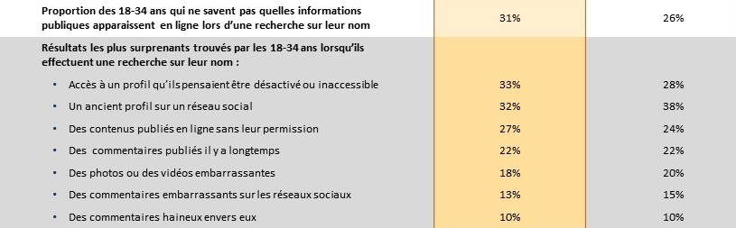 Un tiers des 18-34 ans ne sont pas conscients des résultats d’une recherche portant sur leur nom