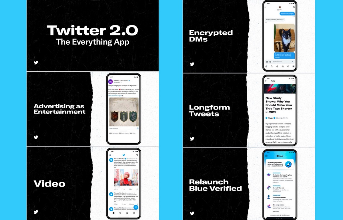 Voici les 6 fonctionnalités mises en avant par Elon Musk pour Twitter 2.0 :