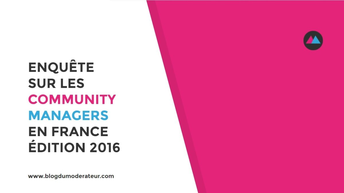 Enquête réalisée par le Blog du Modérateur, auprès de 419 community managers exerçant leur métier en France, entre le 9 et le 27 mai 2016.
