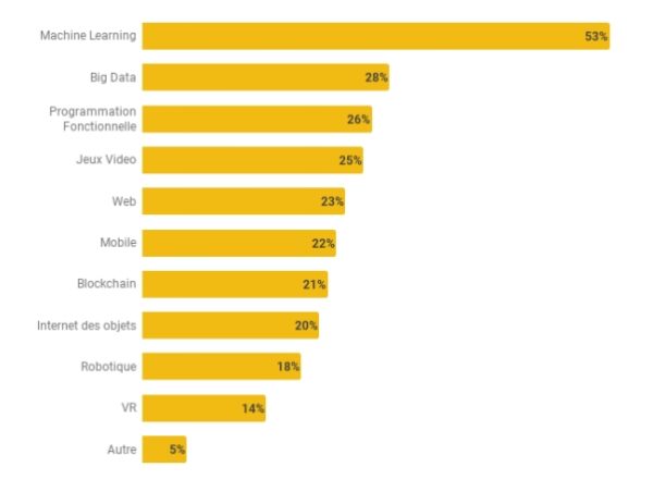 Selon les développeurs interrogés, le machine learning est la compétence à apprendre en 2018. Big Data et programmation fonctionnelle suivent.