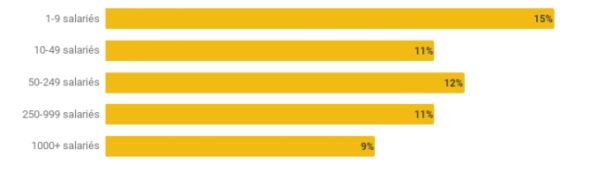 15% des développeurs travaillant dans des entreprises de 1 à 9 salariés se disent « très épanouis ». Ils ne sont que 9% à l’être dans les entreprises de 1000 salariés et plus.
