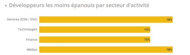 Ce sont les développeurs qui travaillent dans les ESN et les médias qui sont les moins épanouis, suivis par ceux travaillant les les technologies et la finance.