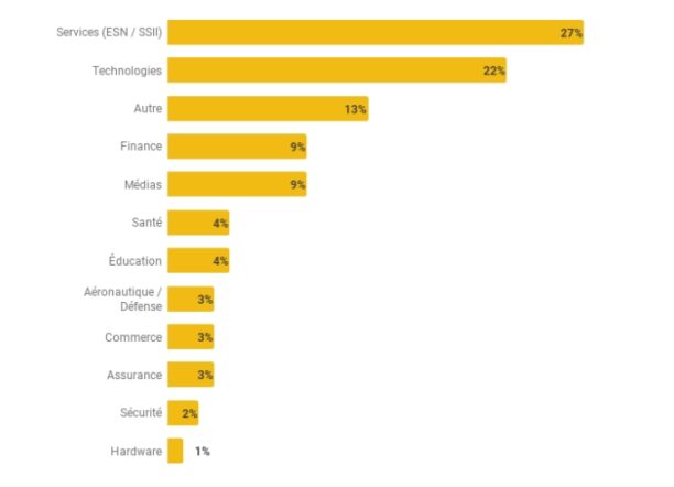27% des répondants interrogés travaillent pour des ESN, 22% dans une entreprise du secteur des technologies, et 9% dans la finance.