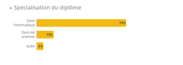 Peu de surprise concernant la spécialisation, les développeurs sont majoritairement diplômés en informatique.