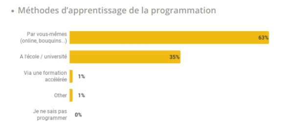Cet âge précoce du démarrage de la programmation fait que beaucoup de développeurs ont démarré en autodidacte.