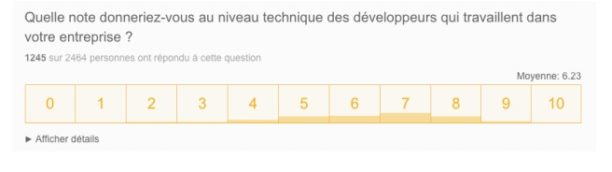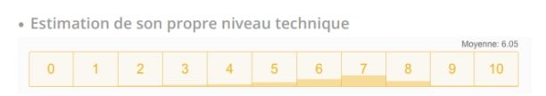 Point intéressant, quand on demande aux développeurs d’estimer leur niveau technique, ceux-ci restent modestes et se donnent en moyenne un 6/10.