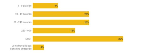 La majorité des développeurs (40%) travaille dans des TPE et PME, mais il sont 32% à travailler pour des entreprises de plus de 1000 employés.