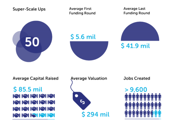 Les 50 super-scaleups européennes génèrent des chiffres qui reflètent bien leur potentiel. Selon l’étude, on constate (en moyenne) que :