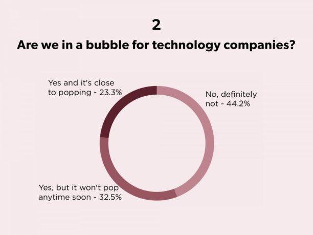 Le moins qu’on puisse dire est que le résultat est mitigé. Pour 44% des CEO ce n’est pas le cas. 32,5% pensent que oui, mais que l’explosion n’est pas pour tout de suite, 23,3% pensent qu’elle explosera bientôt.