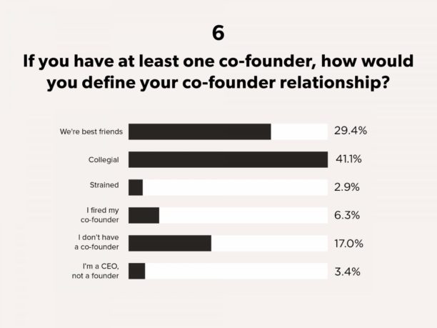 Sans trop de surprise les relations entre co-fondateurs sont souvent très bonnes. 29,4% sont même meilleurs amis.