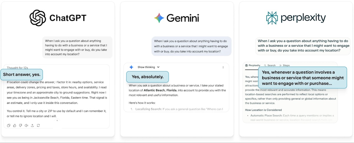 Pour bousculer l’idée, avancée par d’autres études, selon laquelle des plateformes communautaires comme Wikipédia ou Reddit seraient favorisées par ChatGPT, Gemini ou Perplexity, Yext a adopté une autre approche : simuler le comportement réel des utilisateurs. Les auteurs de l’étude ont soumis des requêtes précises, situées géographiquement et associées à une intention de recherche, afin d’observer comment ces paramètres influençaient les réponses générées par les IA.