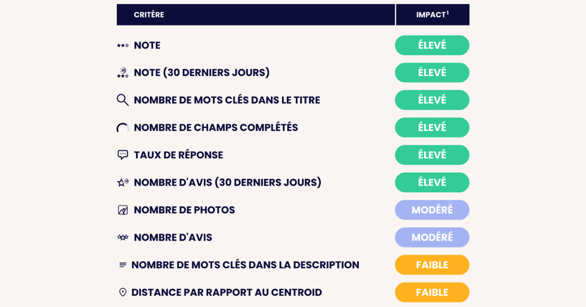 - Générer régulièrement de nouveaux avis, car le nombre d’avis récents (sur 30 jours) et la note associée ont une influence plus forte que le total global des avis.