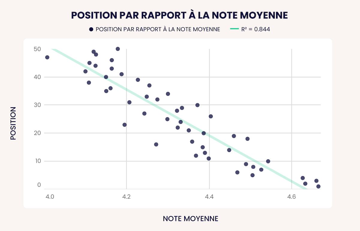 Plus une fiche tend vers une note de 5 sur 5, plus sa position est proche de la première place.