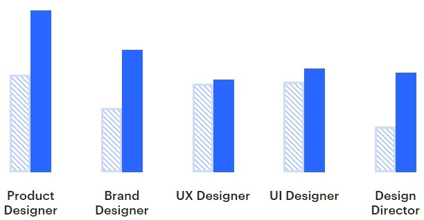 Quand la plupart des start-ups se sont construites avec des équipes inter-fonctionnelles (qui ont des compétences différentes mais qui travaillent vers un but commun), aujourd’hui elles évoluent plutôt en pôles dédiés ou « squads » et privilégient le travail en mode agile afin de gagner en productivité. Aujourd’hui, cette technique est pratiquée au sein de 53% des start-ups interrogées. 93% d’entre elles prévoient aussi d’agrandir leur équipe design à hauteur de 50% de son effectif initial. D’ailleurs, la majorité des start-ups design centric planifient non seulement de doubler leur effectif mais également de faire appel à encore plus de services extérieurs (des freelances) pour leur venir en aide dans les 12 prochains mois. Le challenge principal étant la chasse des talents, les postes les plus recherchés sont les designers produit et les designers de marque.