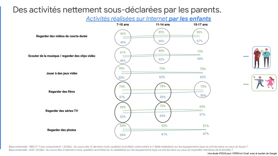 Concernant les usages, l’enquête note un écart entre les perceptions des parents et celles des enfants à différents niveaux.