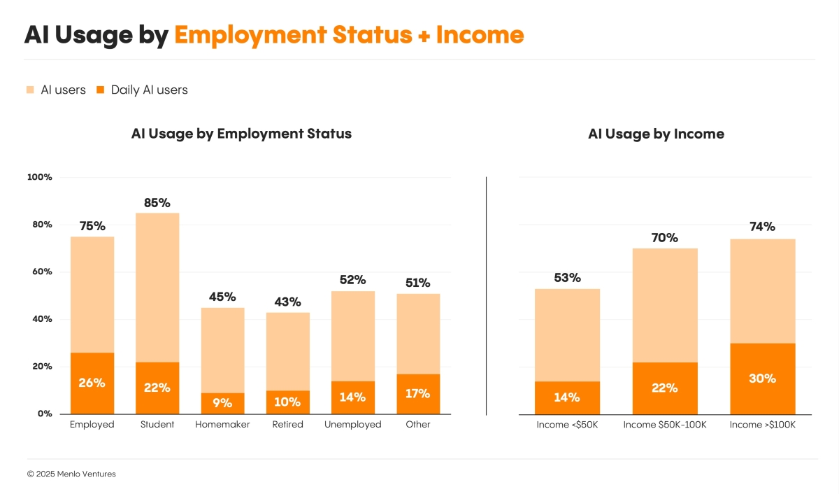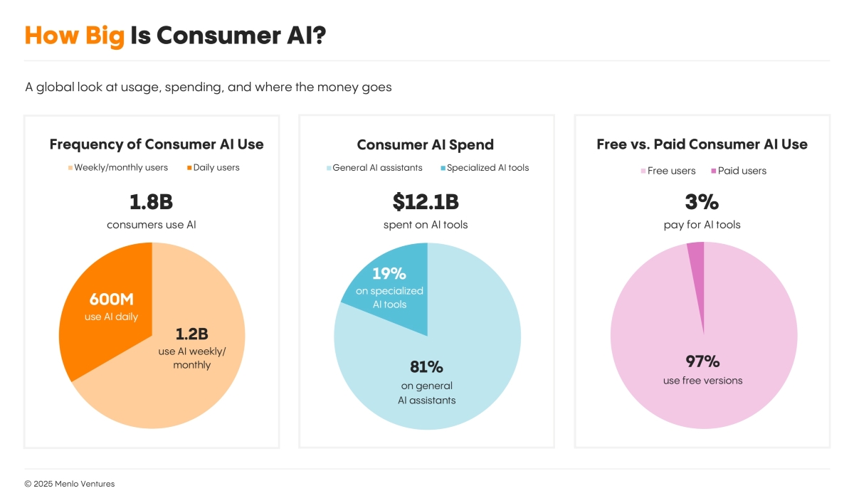 Selon le dernier rapport de Menlo Ventures, l’adoption de l’IA se généralise. Mais les plans payants peinent à convaincre.