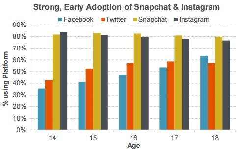 Durant les six derniers mois, Snapchat a progressé chez les adolescents malgré la stratégie d’imitation agressive de Facebook. Le taux d’usage est progressivement passé de 70% à 80% chez les jeunes générations depuis 2015. Aussi, Snapchat est de plus en plus présent dans le top 3 des réseaux sociaux préférés des jeunes.