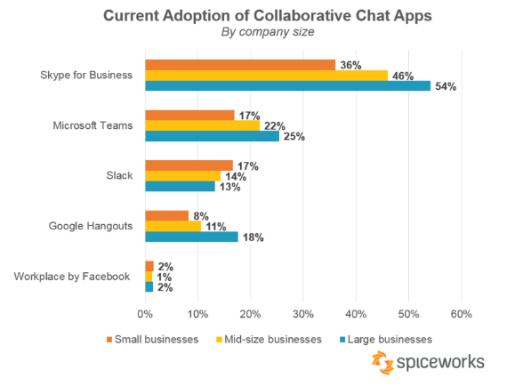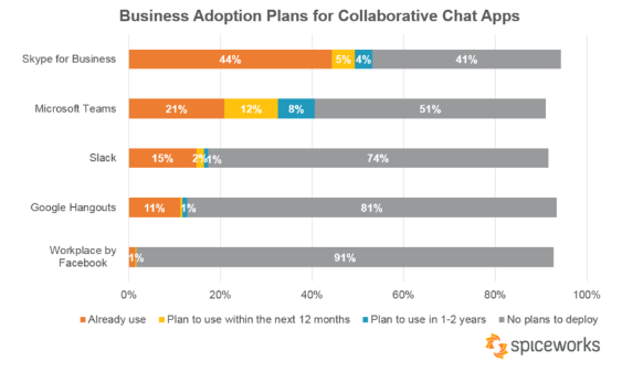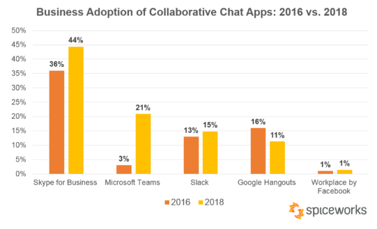 Skype for Business reste en tête, Microsoft Teams surpasse Slack, Google Hangouts décline et Workplace by Facebook continue de lutter