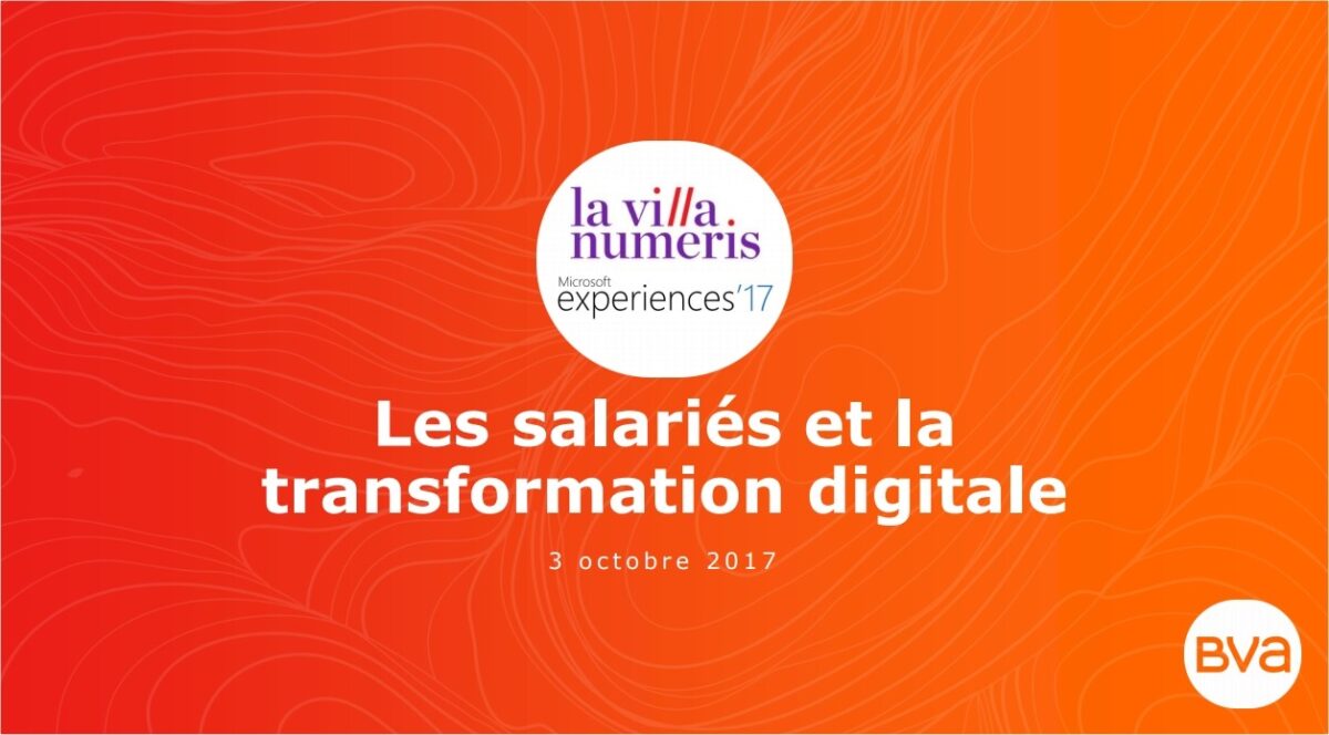 Dans le cadre du Microsoft experiences’17, l’institut BVA et la Villa Numeris ont réalisé une étude sur les salariés et la transformation digitale. L’étude a été réalisée grâce à un échantillon de 558 salariés, issus d’une sélection de 1092 Français représentatifs de la population âgée de 18 ans et plus. Parmi les points abordés, les outils de communication employés, la culture digitale, les réseaux sociaux, ou encore la vision qu’ont les salariés de la transformation digitale de leur entreprise.