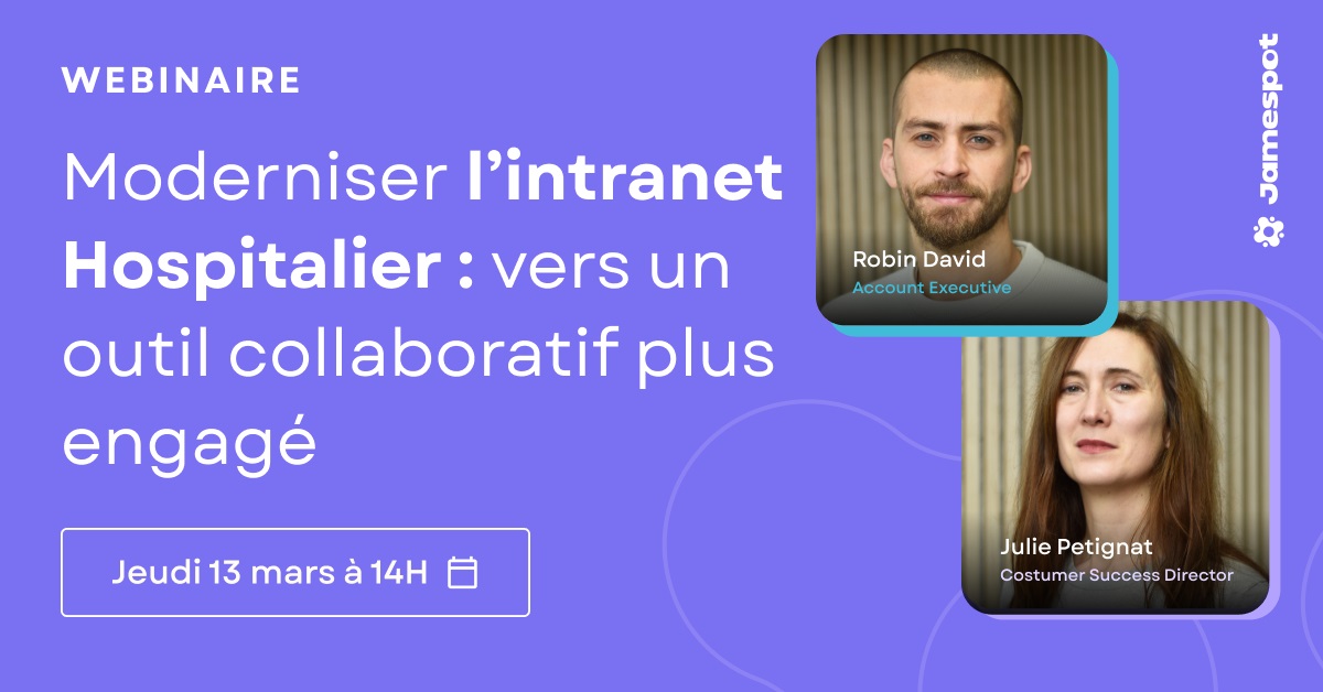 Comment transformer votre intranet hospitalier en un véritable outil collaboratif ? Durant cette session organisée par Jamespot, vous saurez comment simplifier l’accès aux informations essentielles en les centralisant au sein d’une plateforme sécurisée et collaborative. En participant à ce webinar, vous obtiendrez de précieux conseils et retours d’expérience en vue de moderniser votre intranet, et ainsi améliorer la communication au sein de vos équipes.