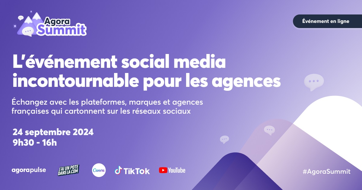 Agorapulse, la plateforme de gestion des réseaux sociaux, organise la nouvelle édition de son événement dédié aux professionnels du social media et aux décideurs en agences marketing. L’événement, qui est gratuit et ouvert à tous, vous offre l’opportunité d’en apprendre davantage sur les stratégies marketing et les campagnes « qui cartonnent » sur les réseaux sociaux, les tendances social media à venir, et les solutions du marché à connaître pour faciliter la mise en place de vos actions. Des acteurs de référence du secteur (TikTok, YouTube, Canva, Agence Yuri & Neil…) seront présents pour échanger et partager avec vous leurs bonnes pratiques.