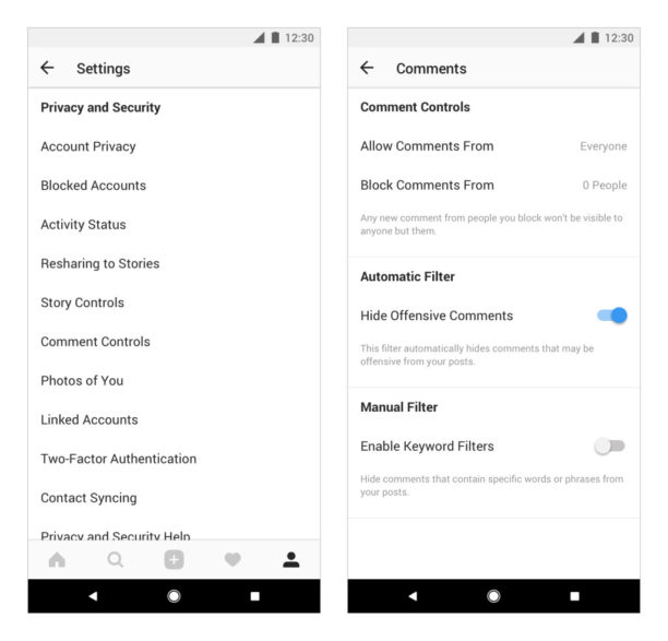 Enfin Instagram a souhaité faire part de son engagement contre le cyberharcèlement qui sévit sur sa plateforme. Instagram annonce qu’il filtrera les commentaires injurieux ou haineux de manière plus efficace. Ce nouveau filtre est activé par défaut pour tous les utilisateurs, il est possible de le désactiver dans le menu de contrôle des commentaires.