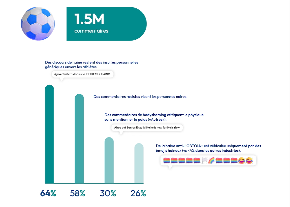 - L’actualité du football (défaites, transferts), qui reste le vecteur où la haine en ligne « apparaît le plus rapidement ».