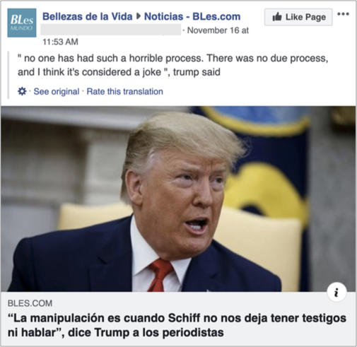 Le réseau de faux comptes agissait en postant et en likant massivement du contenu en faveur du président américain Donal Trump, via les pages et les groupes du média « The BL » sur Facebook et Instagram.