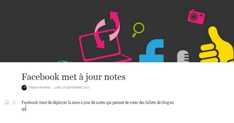 Comme nous vous l’avions annoncé il y a peu, Facebook a totalement revu son outil « Notes » qui permettait d’écrire de courts articles. L’outil s’était peu à peu perdu dans les usages au cours des années. Pour y accéder, le chemin est d’ailleurs assez compliqué si on ne passe pas par l’URL directe facebook.com/notes. Il faut en effet aller sur son profil, cliquer sur « À propos » et scroller tout en bas, jusqu’à « Articles » puis, « Ajouter Articles ». Une fois que vous cliquez dessus, vous aurez accès à une interface très simple qui permet d’ajouter une banner « à la Medium », un titre, des H1, H2, H3 ainsi que du texte et des images, des légendes, et des citations ou des listes.