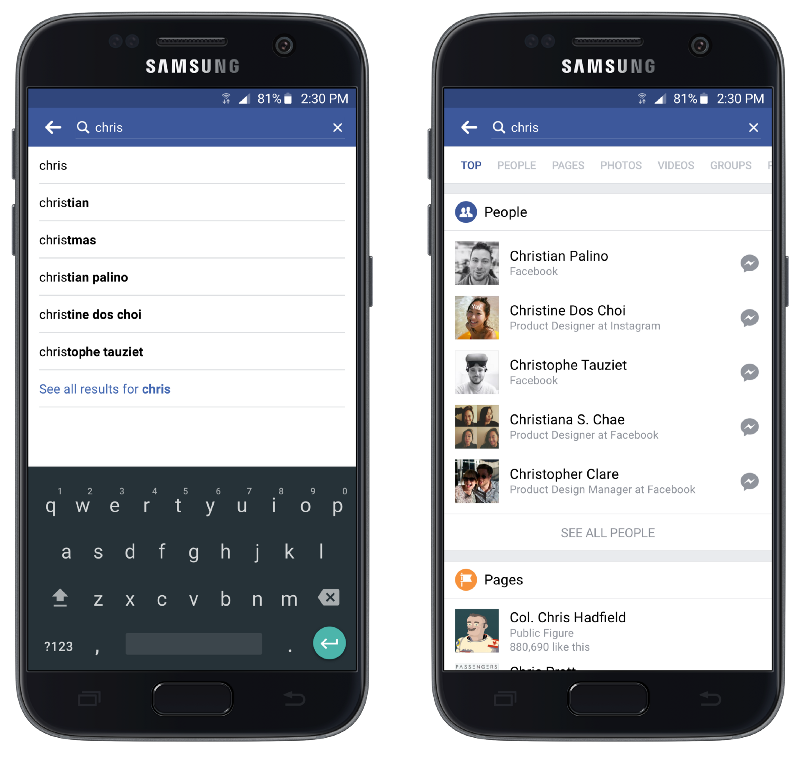 En déployant ce système hybride, Facebook a cherché à savoir comment réagissait les utilisateurs via plusieurs études. Et il s’avère qu’ils comprenaient mal ce système jugé peu clair par rapport aux expériences de recherche d’autres services. C’est vrai que face à Google, la comparaison est sévère… Ce mélange de résultats suggérés + auto-complete était notamment mal compris.