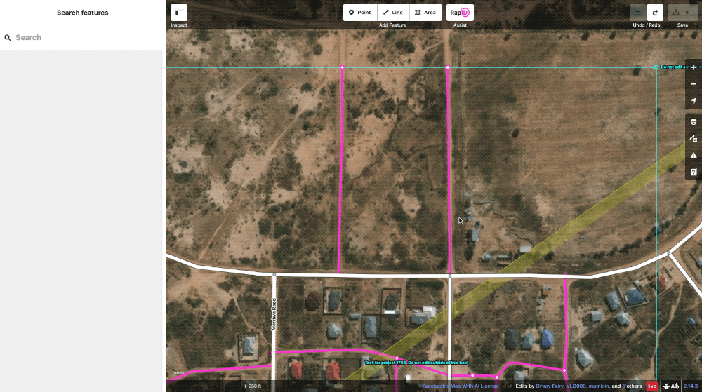 L’outil RapidID permet d’identifier, d’ajouter et d’éditer des routes avec précision et plus rapidement. Jusqu’à aujourd’hui, la création d’une route dans le système OSM (appelé iD) consistait généralement à dessiner la route au-dessus de l’image satellite à l’aide de lignes et de courbes simples. Avec RapiD, l’intelligence artificielle a déjà rempli ce qu’elle suppose être des routes, et le travail de l’homme consiste plutôt à les confirmer, à les annuler ou à les ajuster.